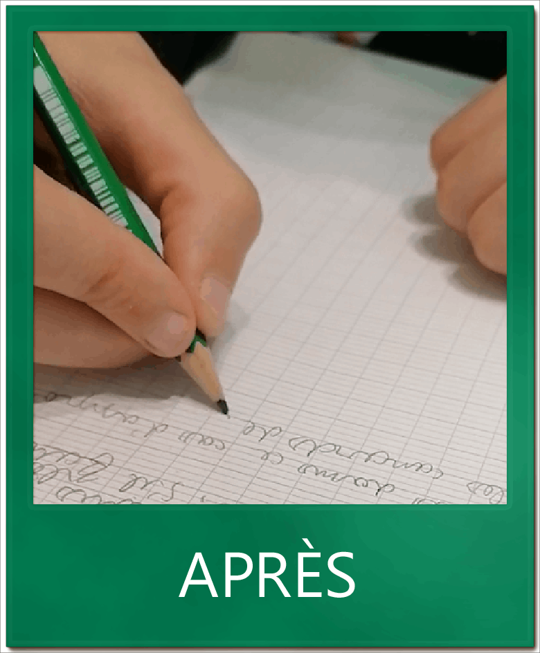 Ainsi sa vitesse d’écriture a augmenté et lui permet désormais de prendre des notes dans les temps.