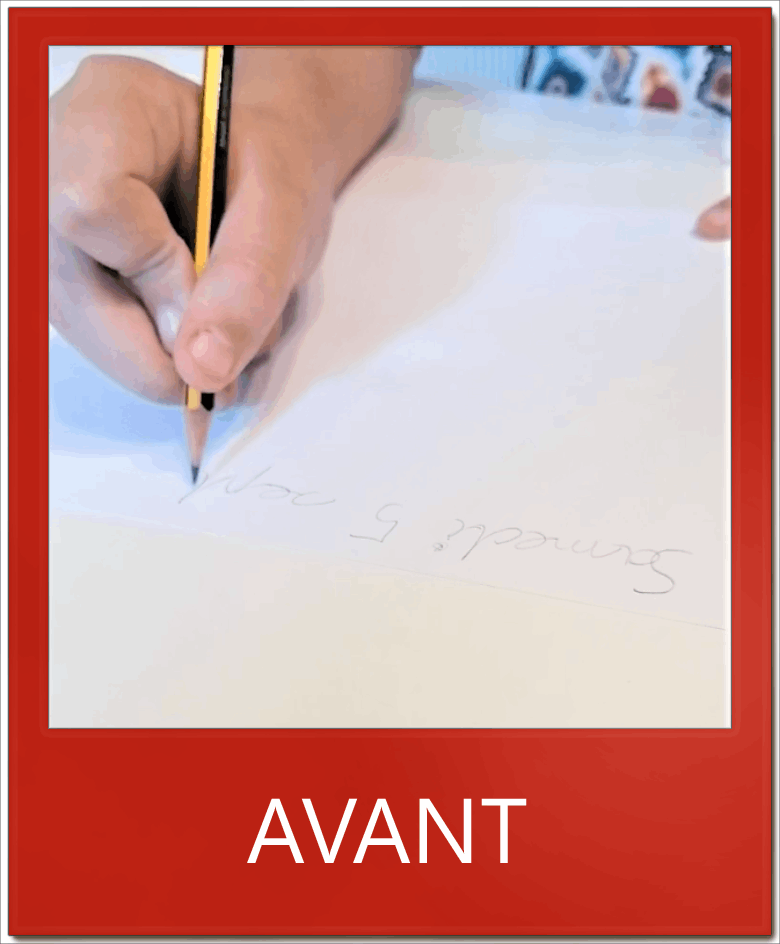 K. en CM2 écrivait lentement à cause du mauvaise tenue et d’une méconnaissance de l’enchaînement des lettres. Elle a désormais gagné en rapidité et en fluidité. Bravo à elle!