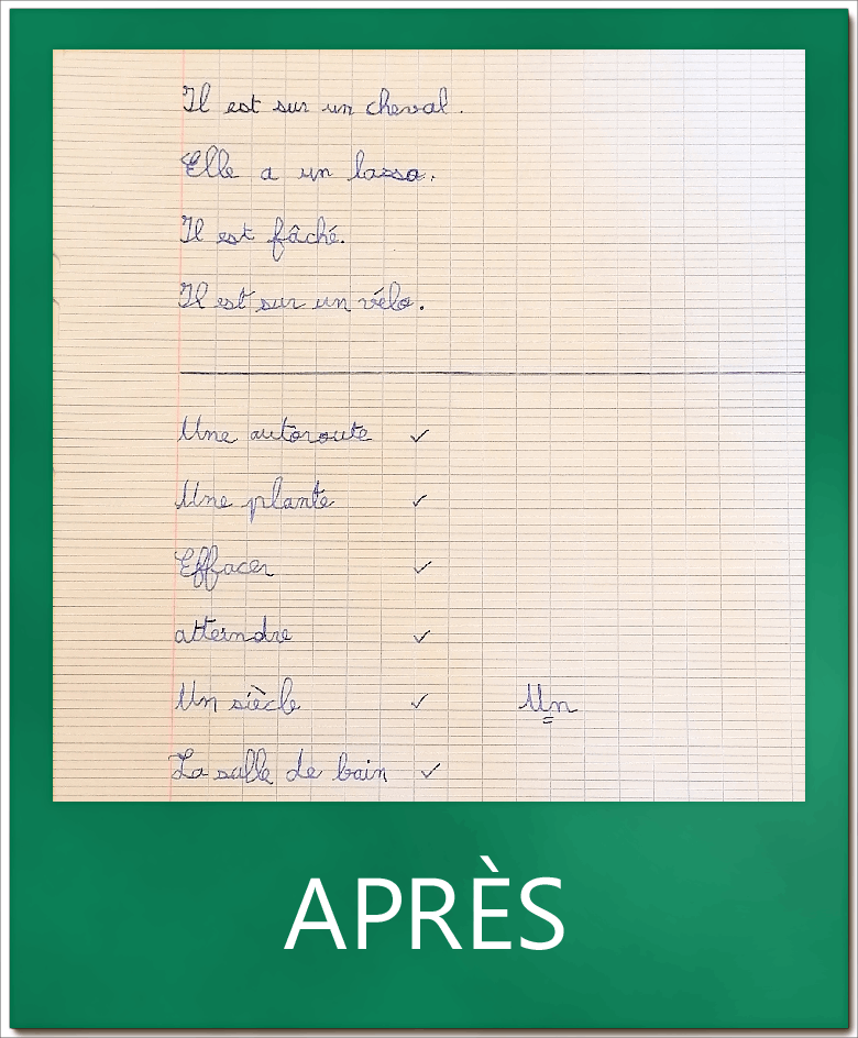 Nous avons terminé par des copies de texte pour augmenter encore sa vitesse. Par exemple, il a appris à ne plus copier mot par mot mais par bloc.
