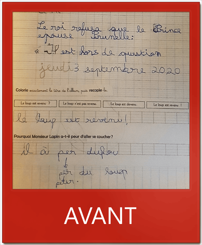 Q.en CE2 prenait beaucoup de temps pour bien écrire. Son investissement au quotidien lui a permis de se dépasser.
