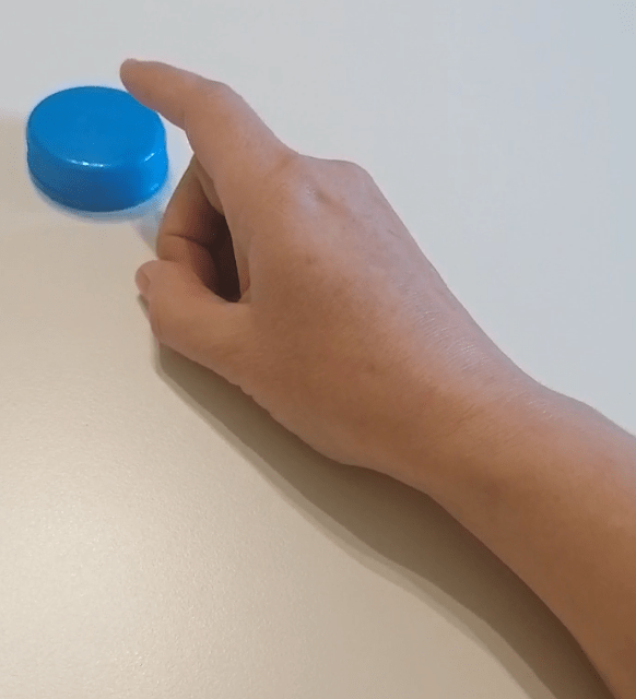 Prévoir 10 lancers au minimum avec la main qui écrit. Pour les enfants qui ont un index hyperlaxe, ils enchaînent avec 10 lancers de l’index.
