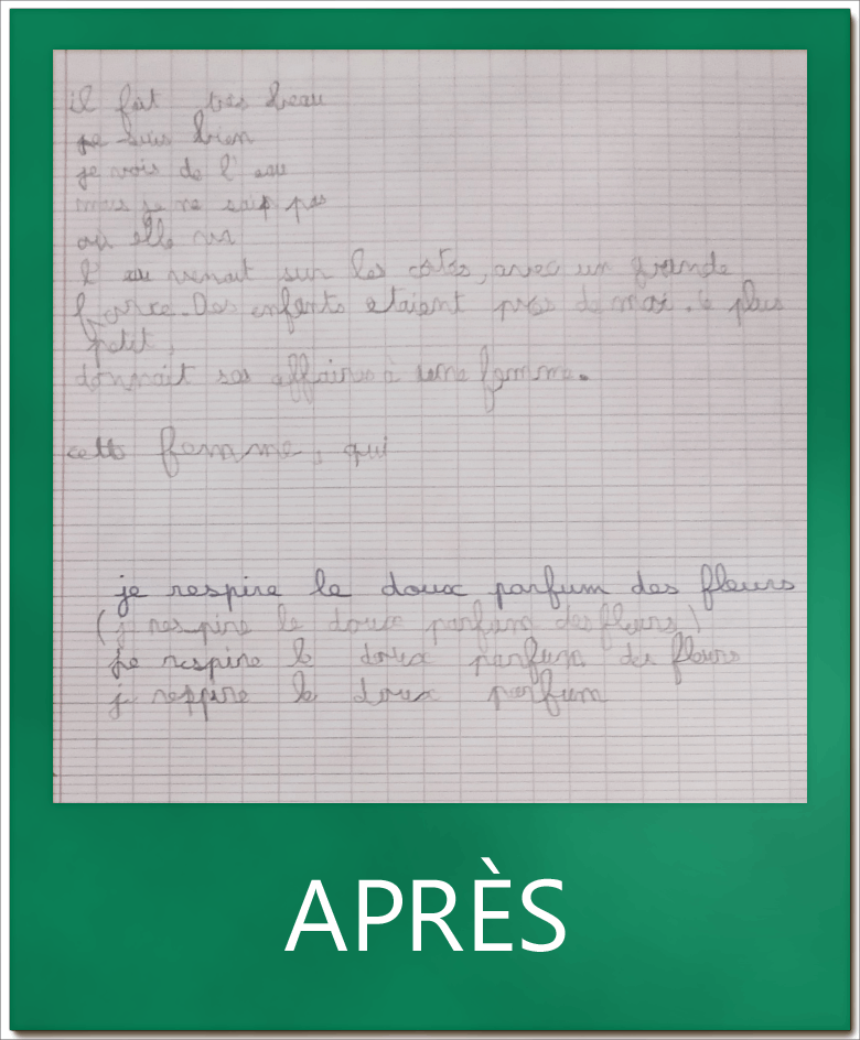Dès la 4ème séance l’écriture était plus fluide et donc la vitesse augmentait.