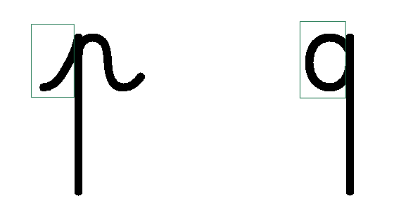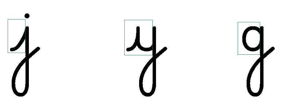 Les jambages bouclés ou bâtonnés descendent jusqu’aux 2 interlignes inférieurs.