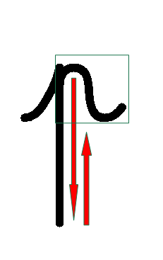 Les lettres avec jambage bâtonné débutent aussi par une forme de 1ère unité :
