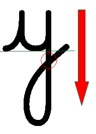Chaque lettre avec jambage bouclé débute par une forme de 1ère unité :