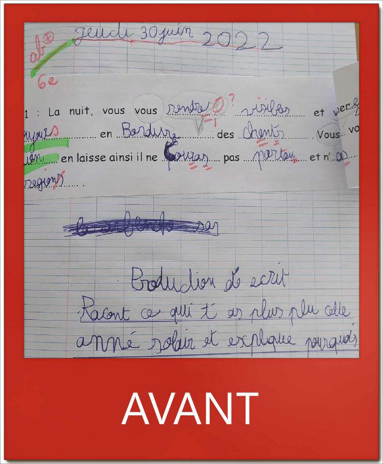 Je commencerai, une fois n’est pas coutume par le témoignage de ce jeune garçon. Ses progrès en écriture lui ont permis de reprendre confiance en lui; confiance bien altérée par rapport à ses difficultés scolaires.