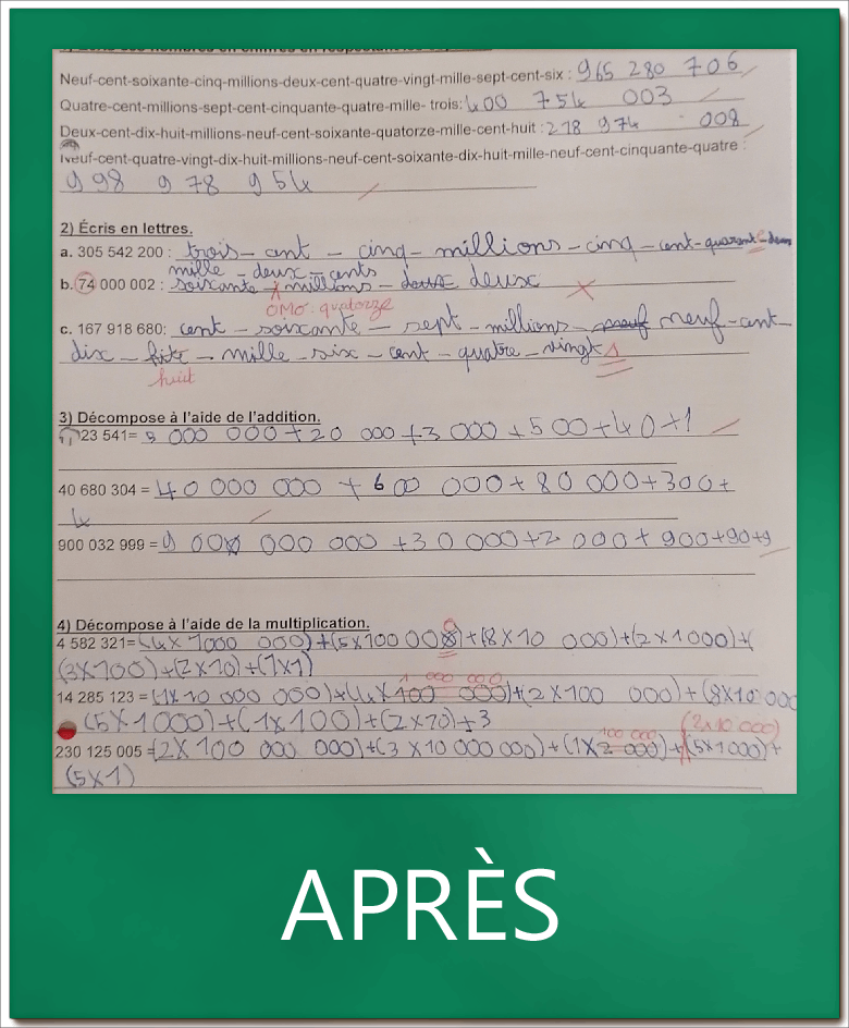 A. était déjà dans la moyenne de sa classe pour la copie rapide (moyenne en CM1 de 60 caractères à la minute) et très proche pour la copie en 5 minutes (moyenne à 224). Elle a gagné en vitesse, se situant désormais sur des scores de fin de CM2 pour l’écriture longue et de fin de 6ème pour l’écriture courte.