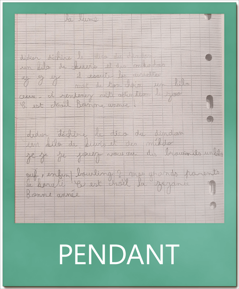 « Ca s’est bien passé. J’ai bien aimé les mots à recopier sans faire d’erreur en une seule fois, les guirlandes et Bouge tes doigts !