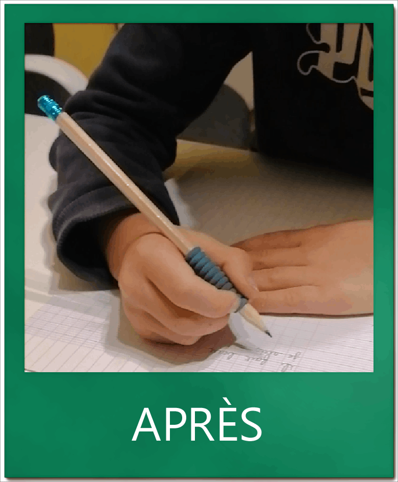 M. a bien apprécié les exercices liés au renfort de la pince pouce-majeur. Le seul bémol était qu’il ne l’appliquait pas systématiquement en classe. Ainsi il aura fallu 5 séances avant que la tenue soit solide.