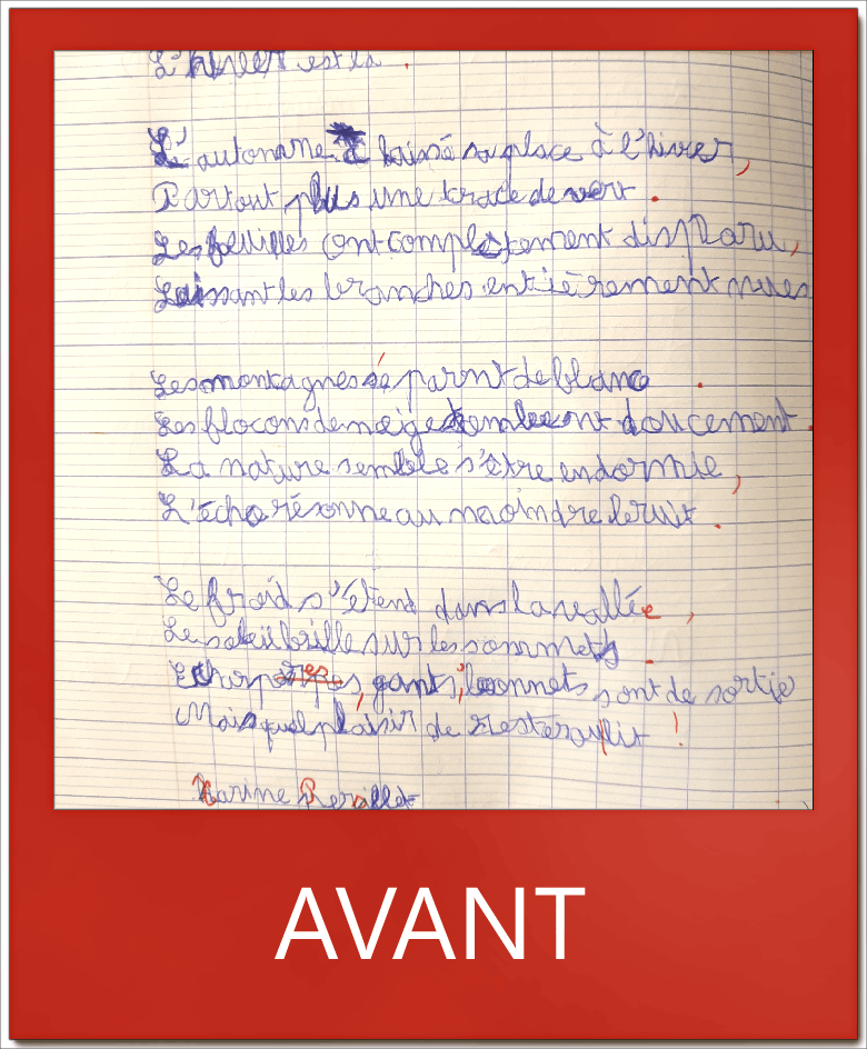 Les poésies prenaient beaucoup de temps à L. Malgré cela, on observait de nombreuses ratures.