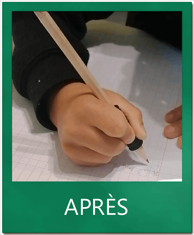 L’ensemble du corps était tendu lorsqu’il écrivait. Des exercices pour favoriser le déplacement du bras et la détente de l’index ont été proposés pour que la nouvelle position amène aussi de la décontraction.