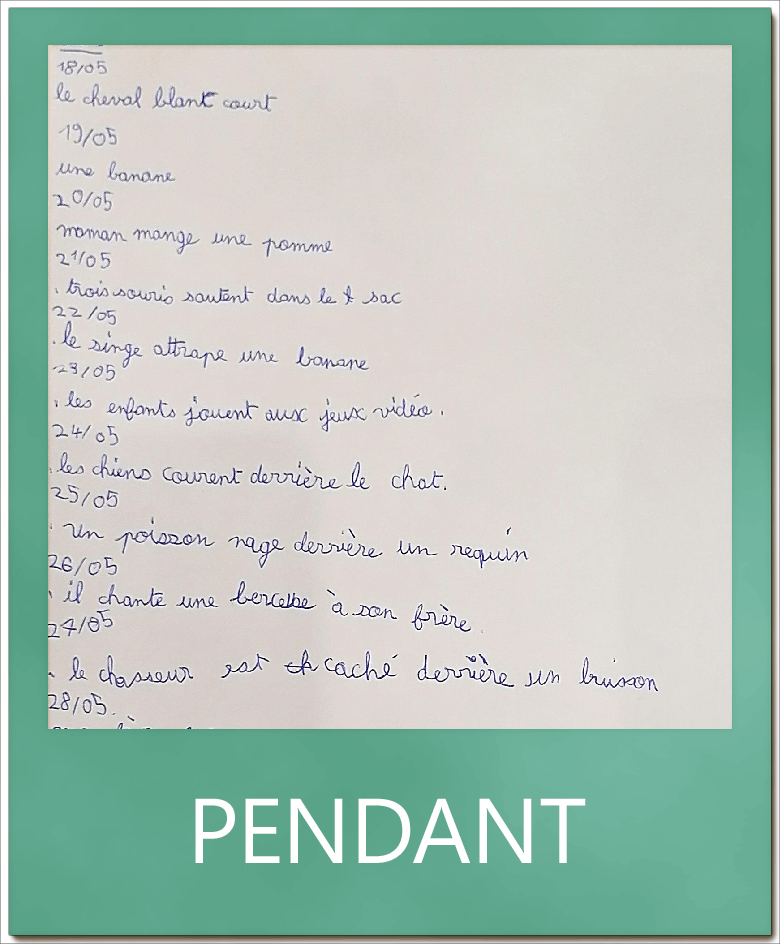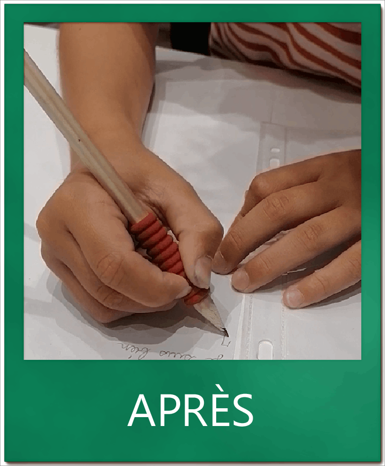 Au fil des séances, le geste est devenu + rapide. Nous avons alors alterné entre exercices au crayon à papier et au stylo.