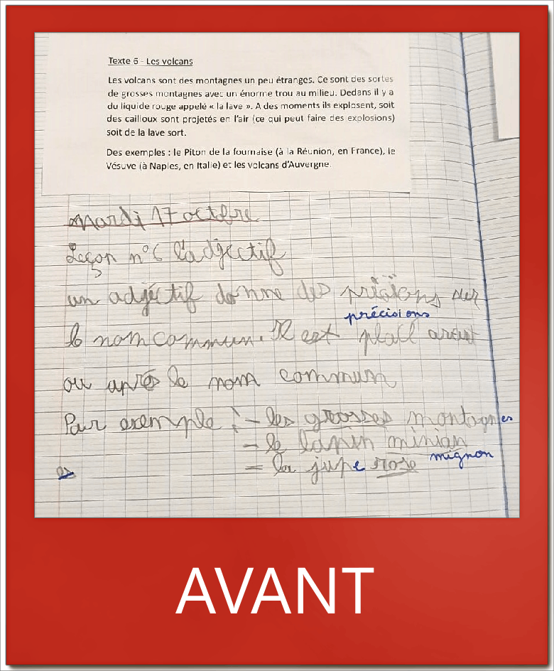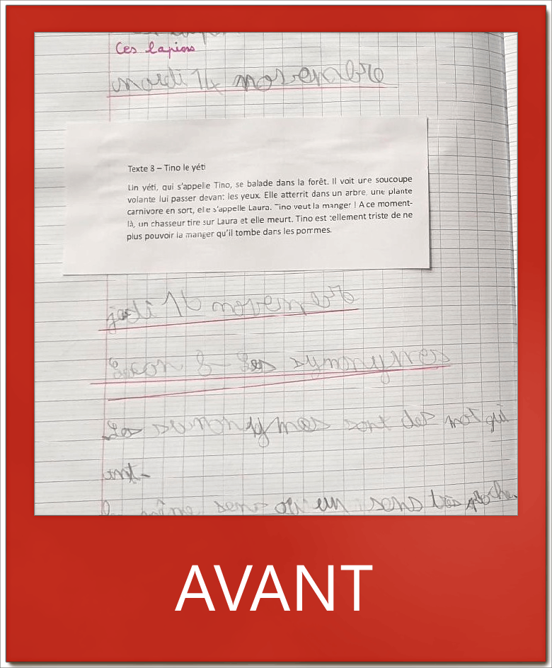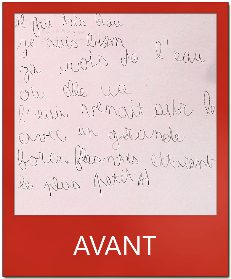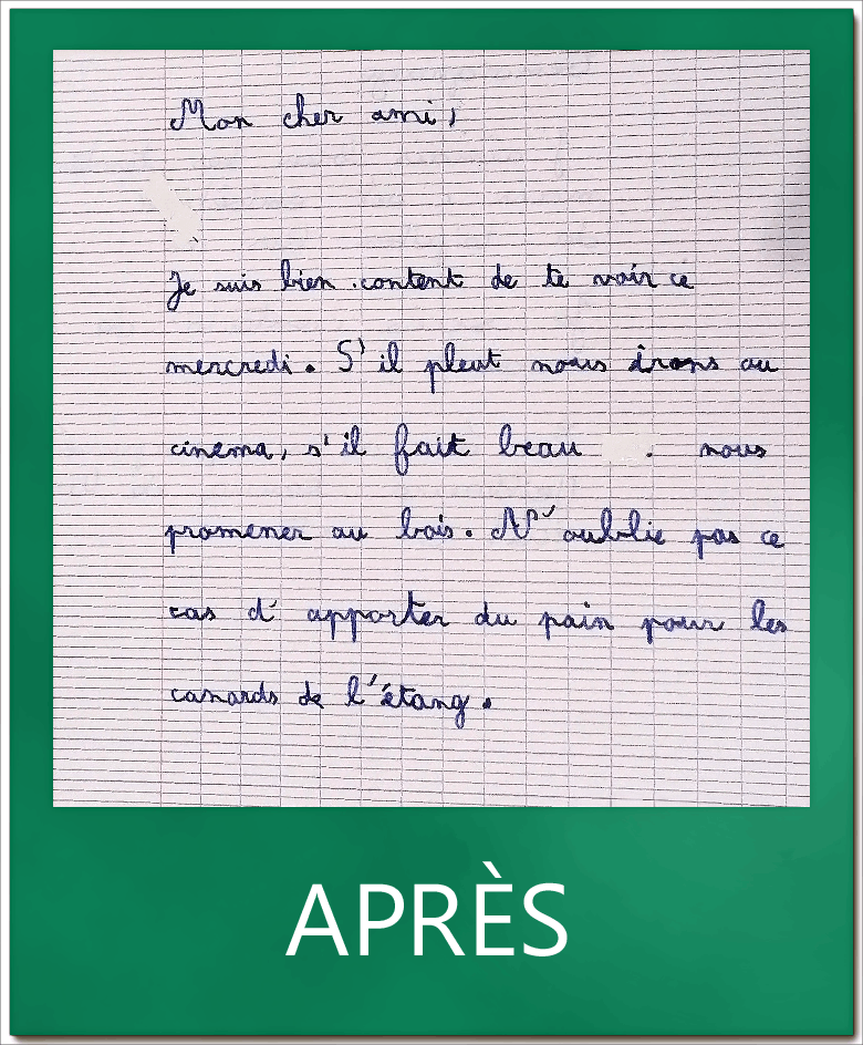En écriture ça va mieux: j’écris plus sur la ligne et je vais plus vite »