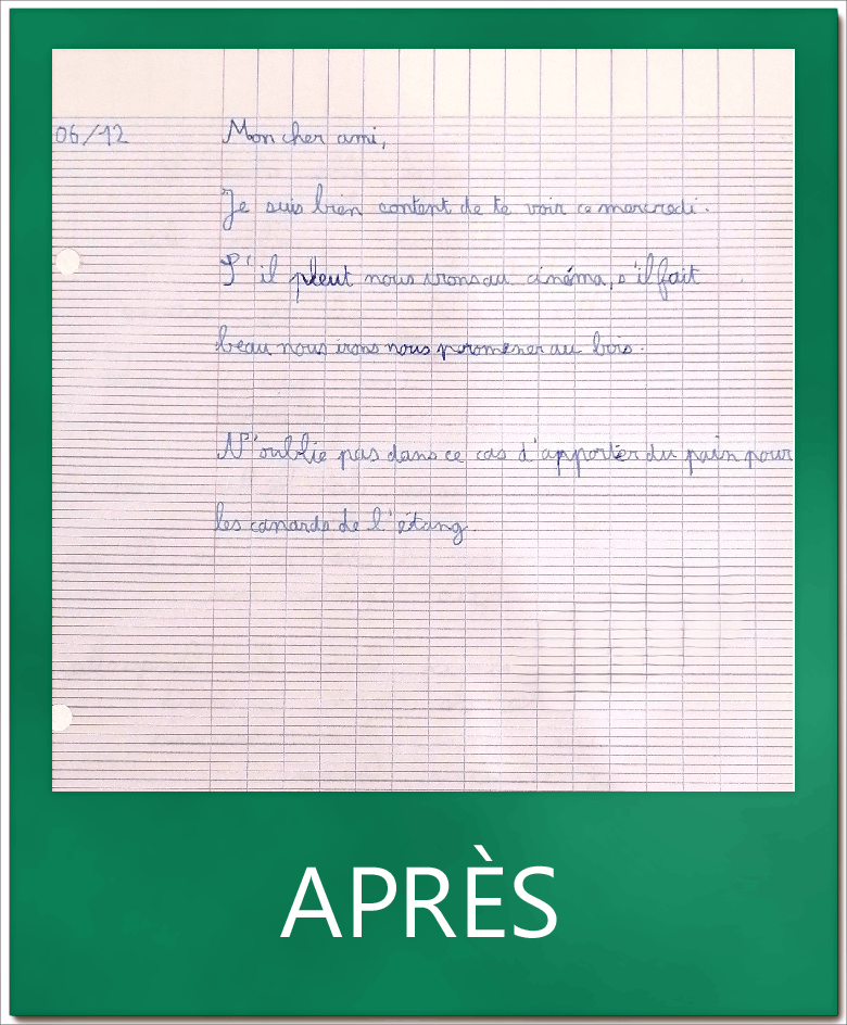 A.élève de CM1 a profité de l’été pour améliorer son écriture.