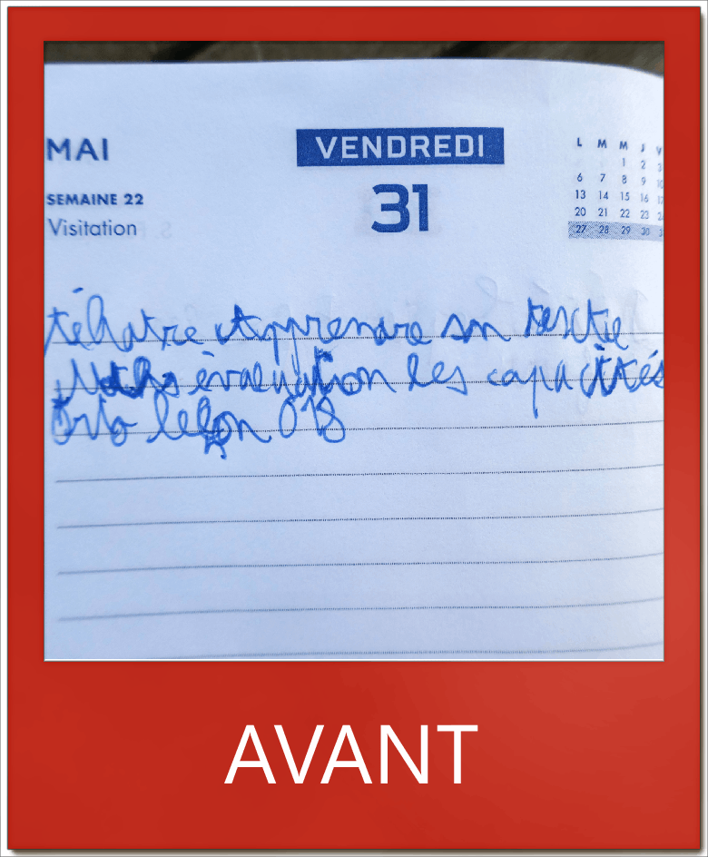 La prise de notes dans l’agenda est intéressante car c’est une copie rapide, souvent effectuée en fin de journée, moment où la fatigue est bien présente.