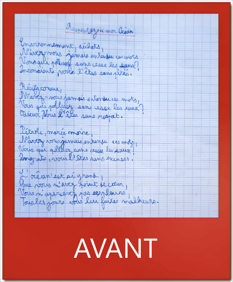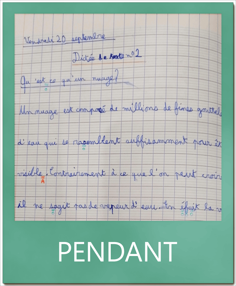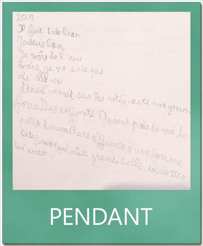 Les poésies sont quant à elles de bons exemples de copie sans contrainte de temps. Il n’est pas rare que l’enfant les copie en plusieurs fois.