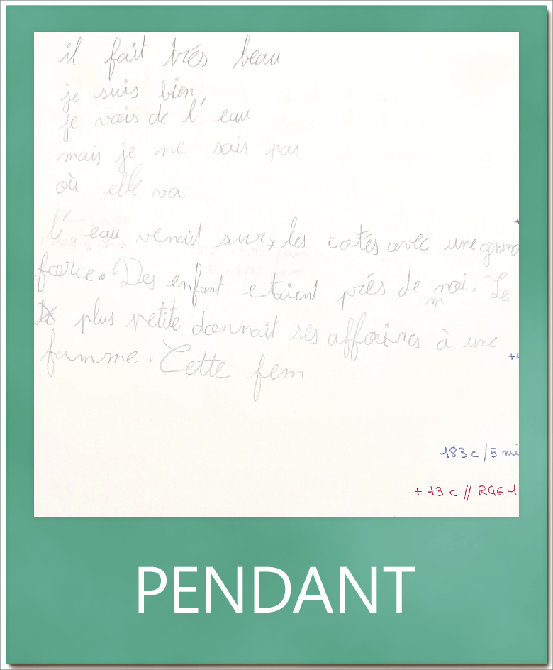 Au fil des séances, l’écriture est devenue plus petite et plus fluide.