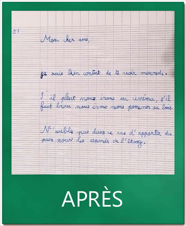 Plus de régularité et un respect des interlignes après quelques mois d’exercices.