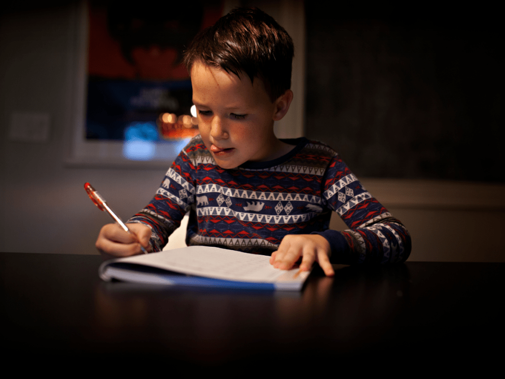 - La position assise : Le bureau et la chaise doivent être adaptés à la taille de l’enfant. Les pieds doivent être bien à plat sur le sol et le dos doit rester droit, idéalement appuyé contre le dossier.