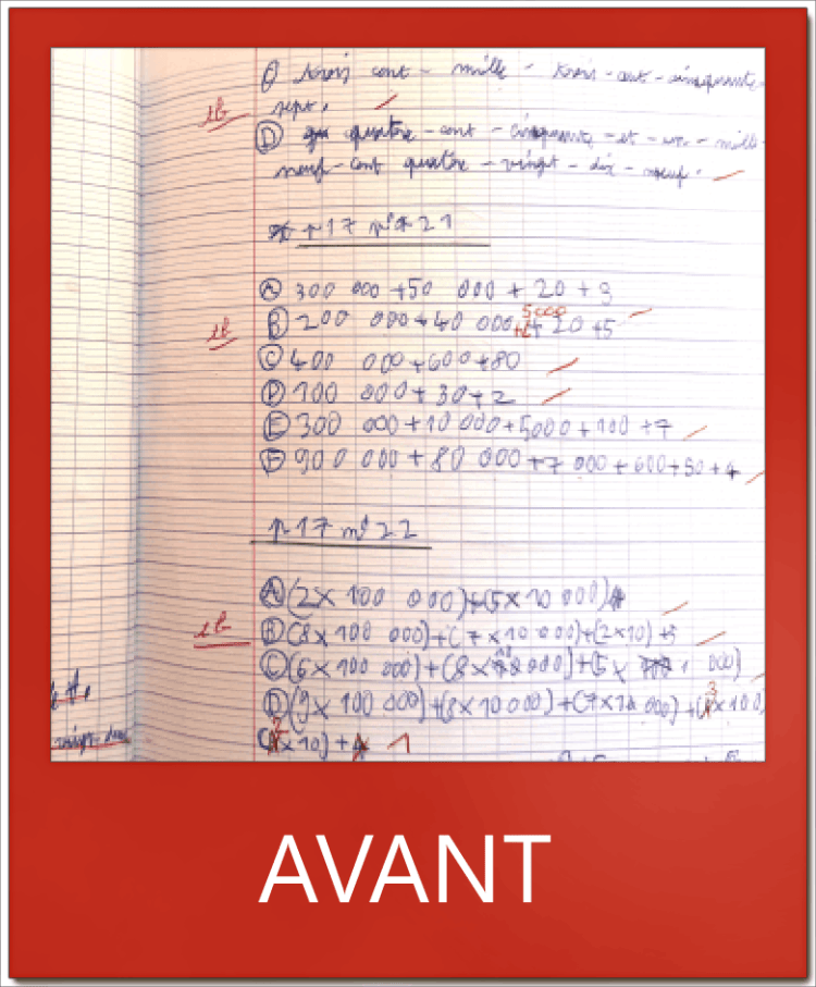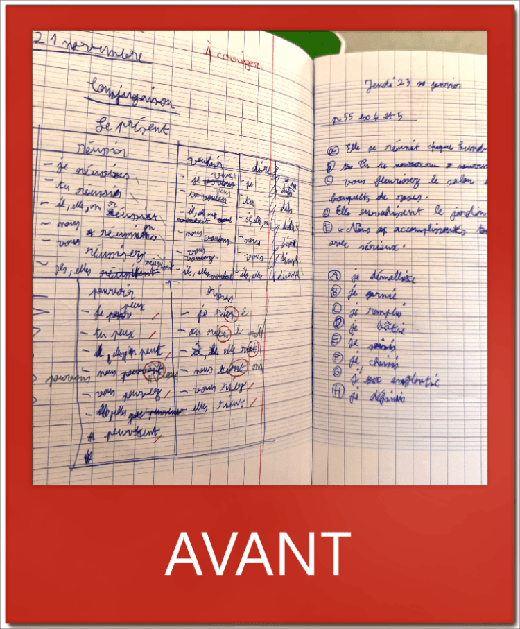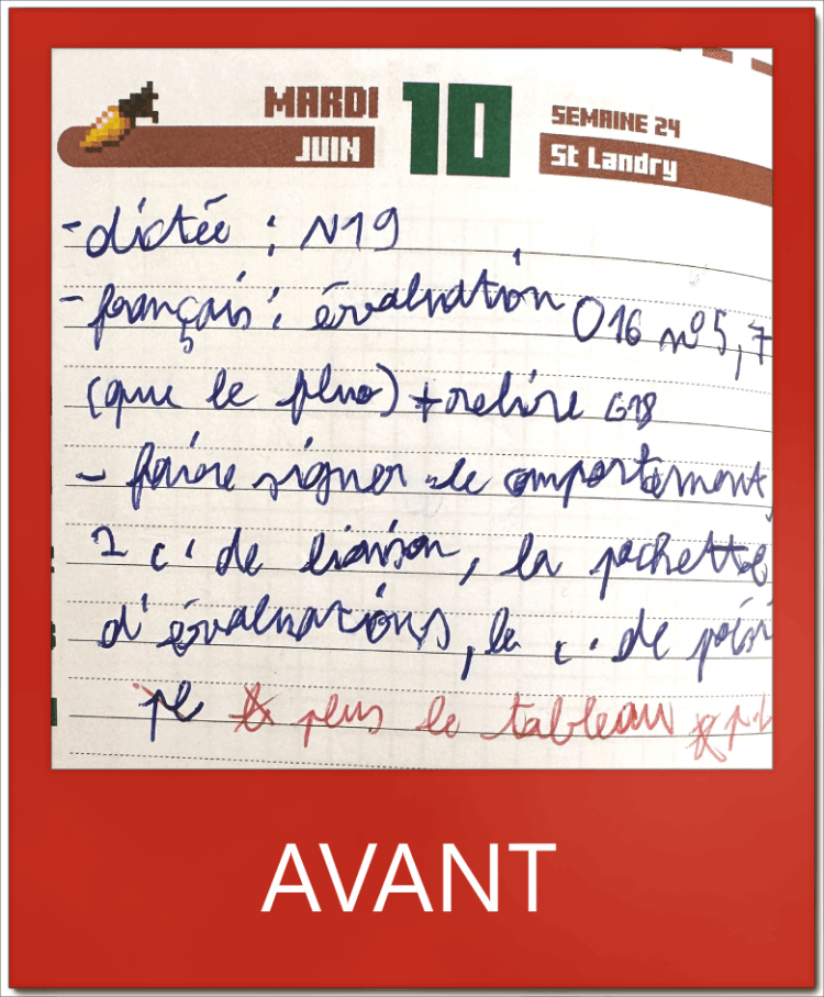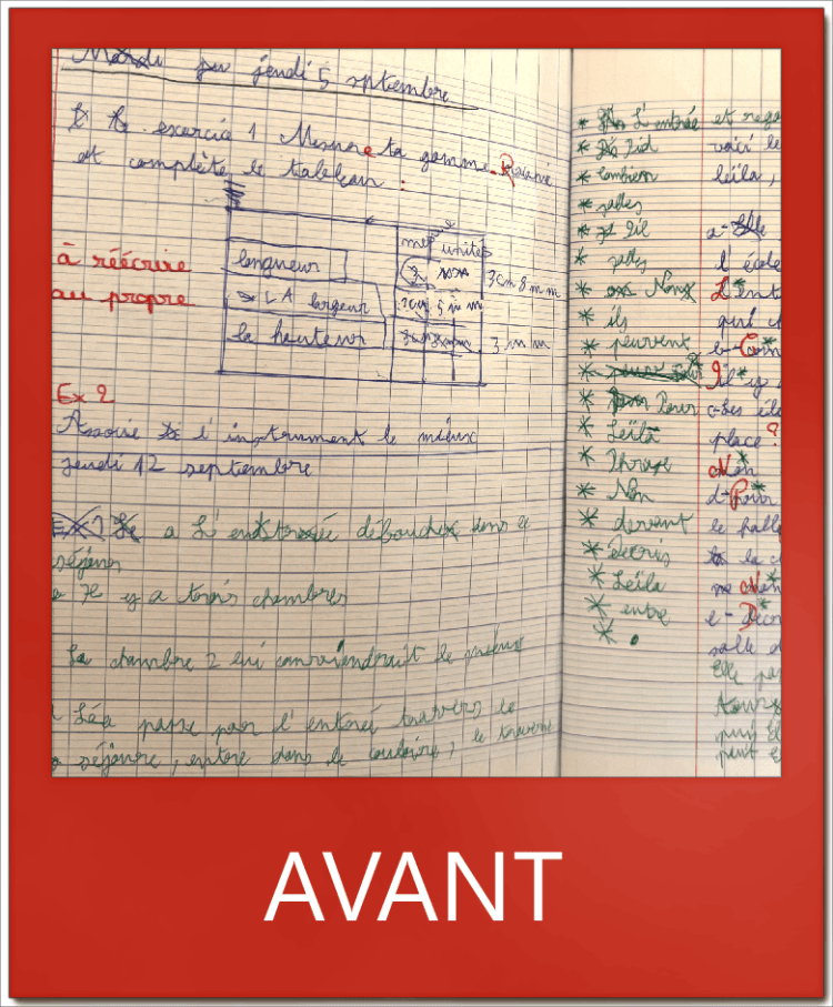 D’autres exemples ci-dessus : des exercices de mathématiques sur la gauche et une prise de notes des devoirs dans l’agenda sur la droite.