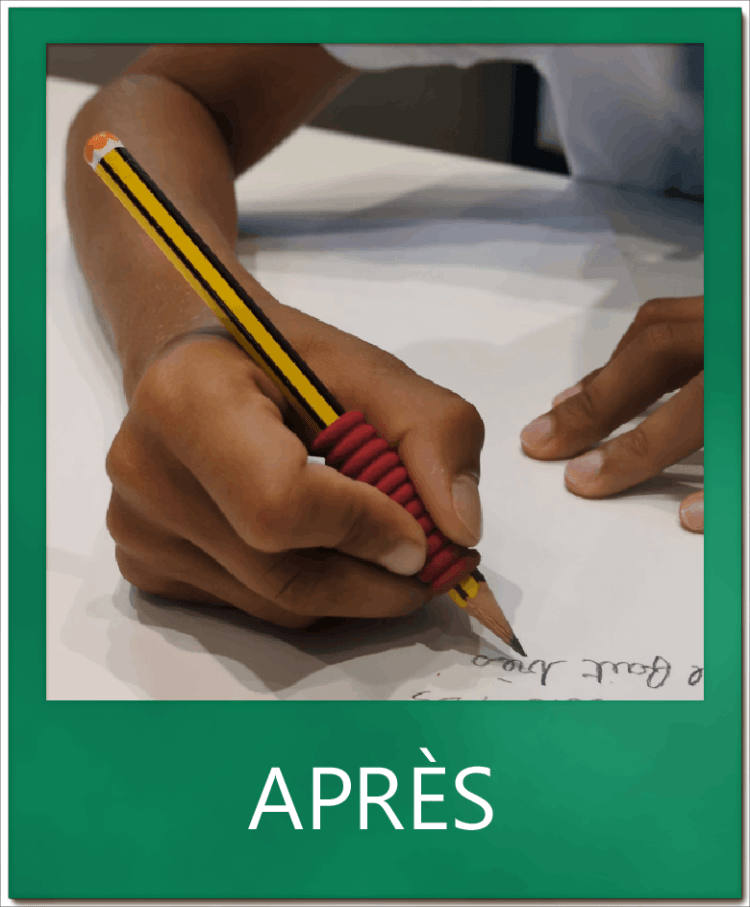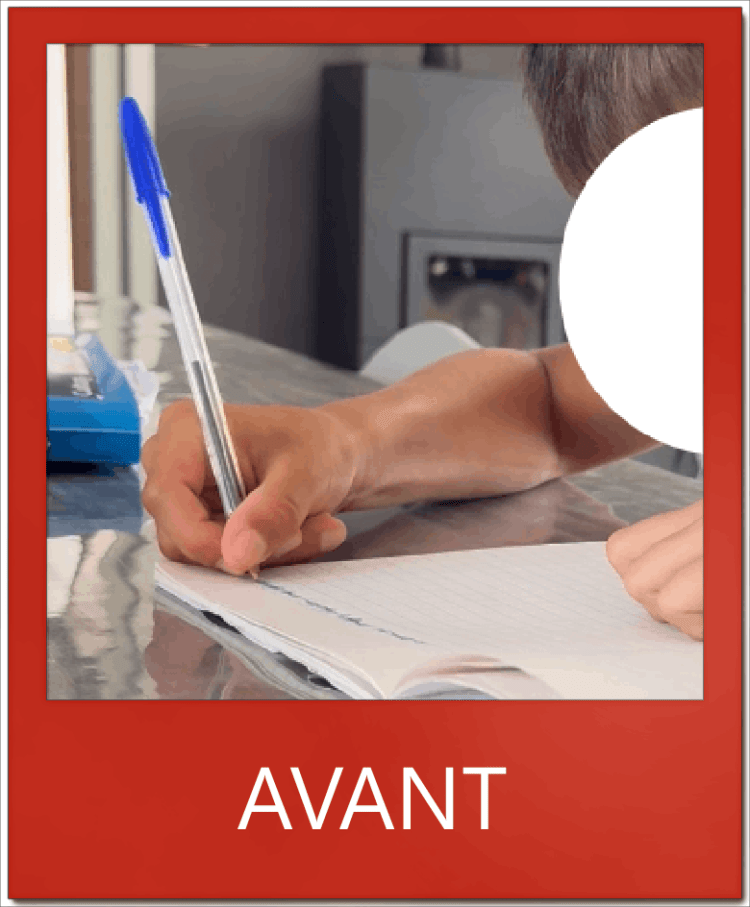 Comme sa tenue était trop basse et qu’il relevait son poignet, il avait des douleurs importantes quand il écrivait. C’est son poignet qui bougeait et non ses doigts.